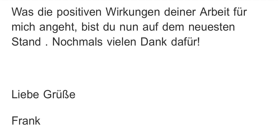 Ich habe Ihnen auf dieser Seite auch weiterführende Infos zur Verfügung gestellt, die Ihnen zeigen, wie ich arbeite und welche Ergebnisse ich anderen Menschen wie Ihnen bereits in der Vergangenheit möglich gemacht habe!